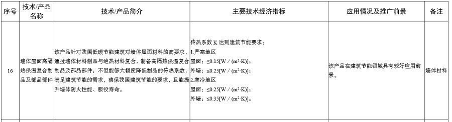 近日,工业和信息化部发布《建材工业鼓励推广应用的技术和产品目录(2023年本)》,墙体屋面高隔热保温复合制品及部品部件、气凝胶保温毡、高性能微纤维玻璃棉制品及其生产技术等绝热节能材料相关技术列入其中。如下: